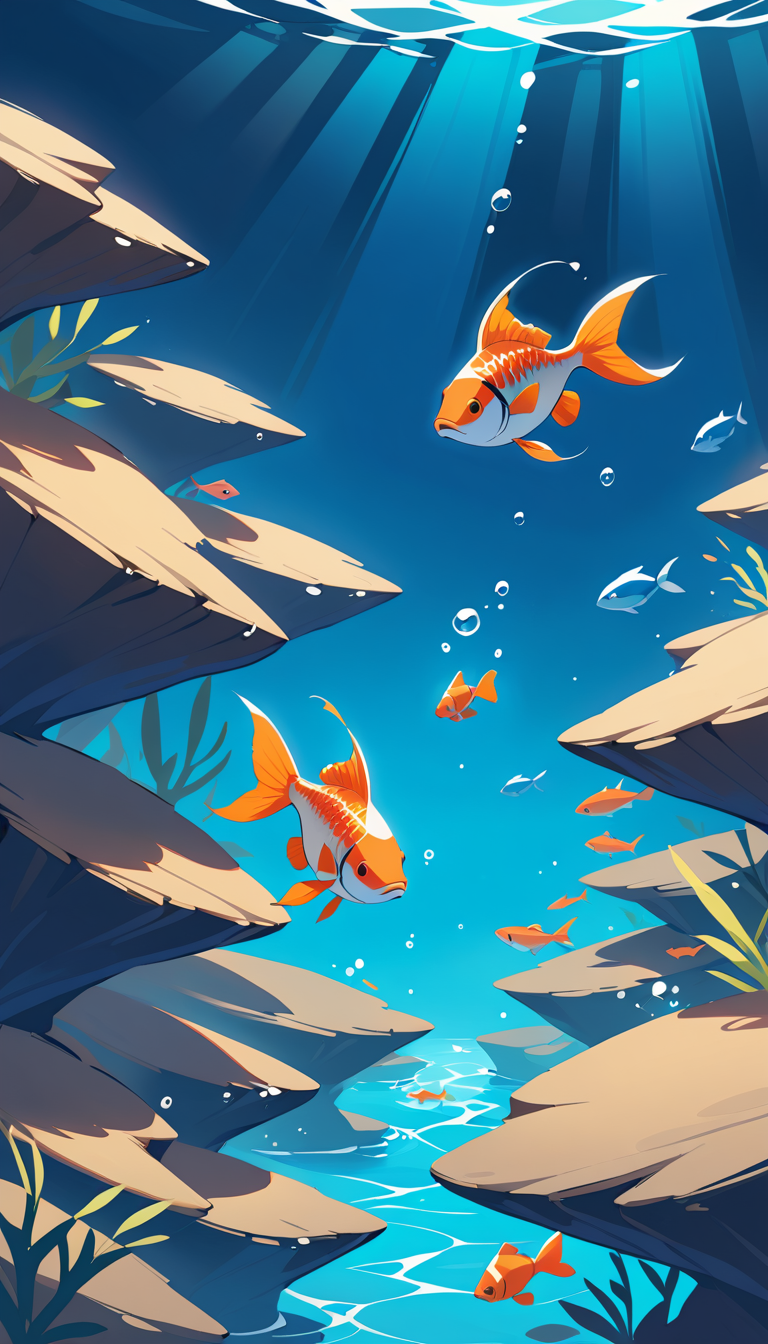 "light_colour": "Cool blue-white from surface, warming slightly on fish scales",