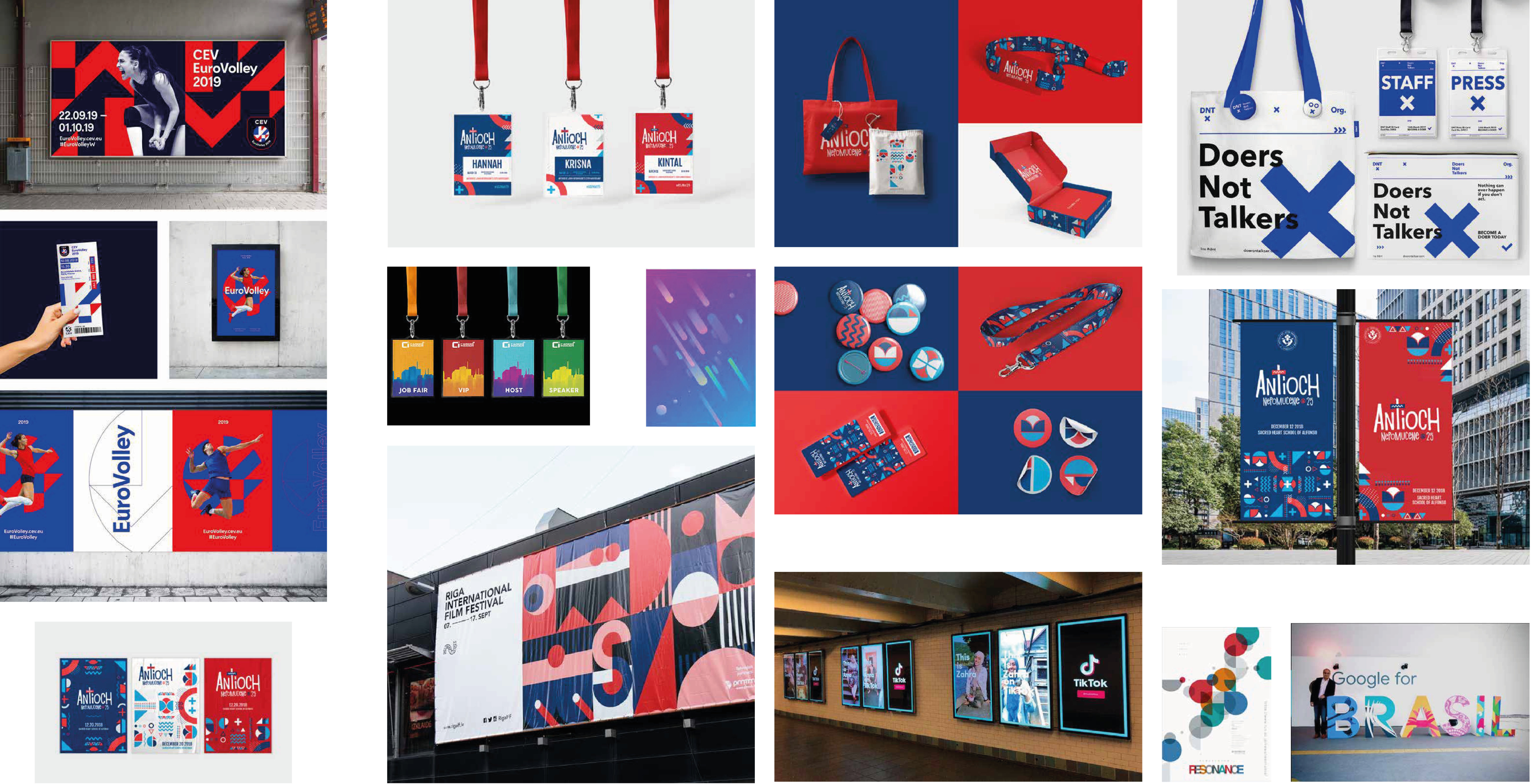 To inform the creative direction for the event identity, I explored a range of visual references — from bold event branding systems to dynamic pattern-based designs. The moodboard helped establish the tone: vibrant, immersive, and visually engaging, with a strong use of geometry and motion to capture the energy of the TikTok platform.